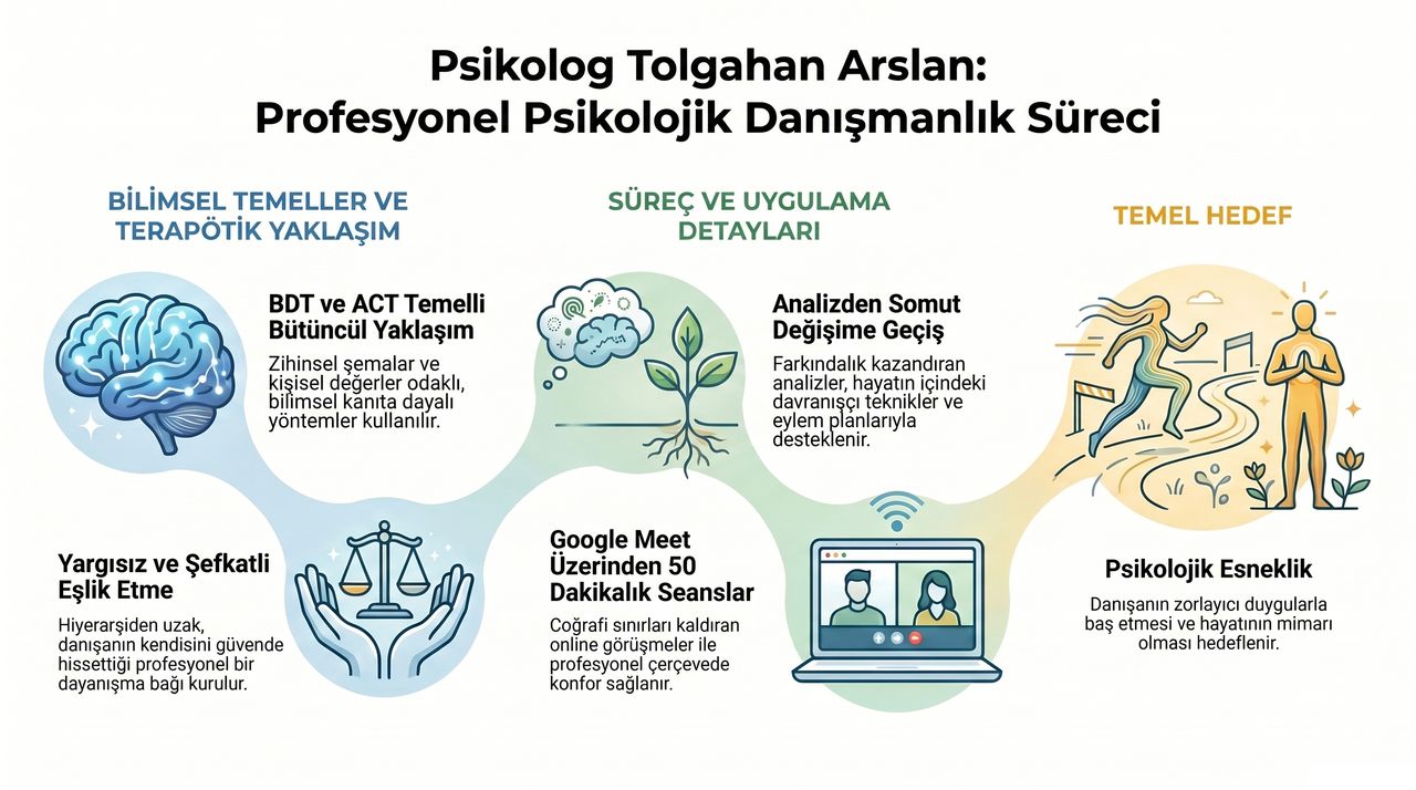 Psikolog Tolgahan Arslan, lisans eğitimini İstanbul Ticaret Üniversitesi Psikoloji Bölümü’nde tamamlamıştır. Ardından, Ondokuz Mayıs Üniversitesi’nde Evlilik ve Aile Danışmanlığı alanında yüksek lisans yaparak bu alandaki yetkinliğini derinleştirmiştir.